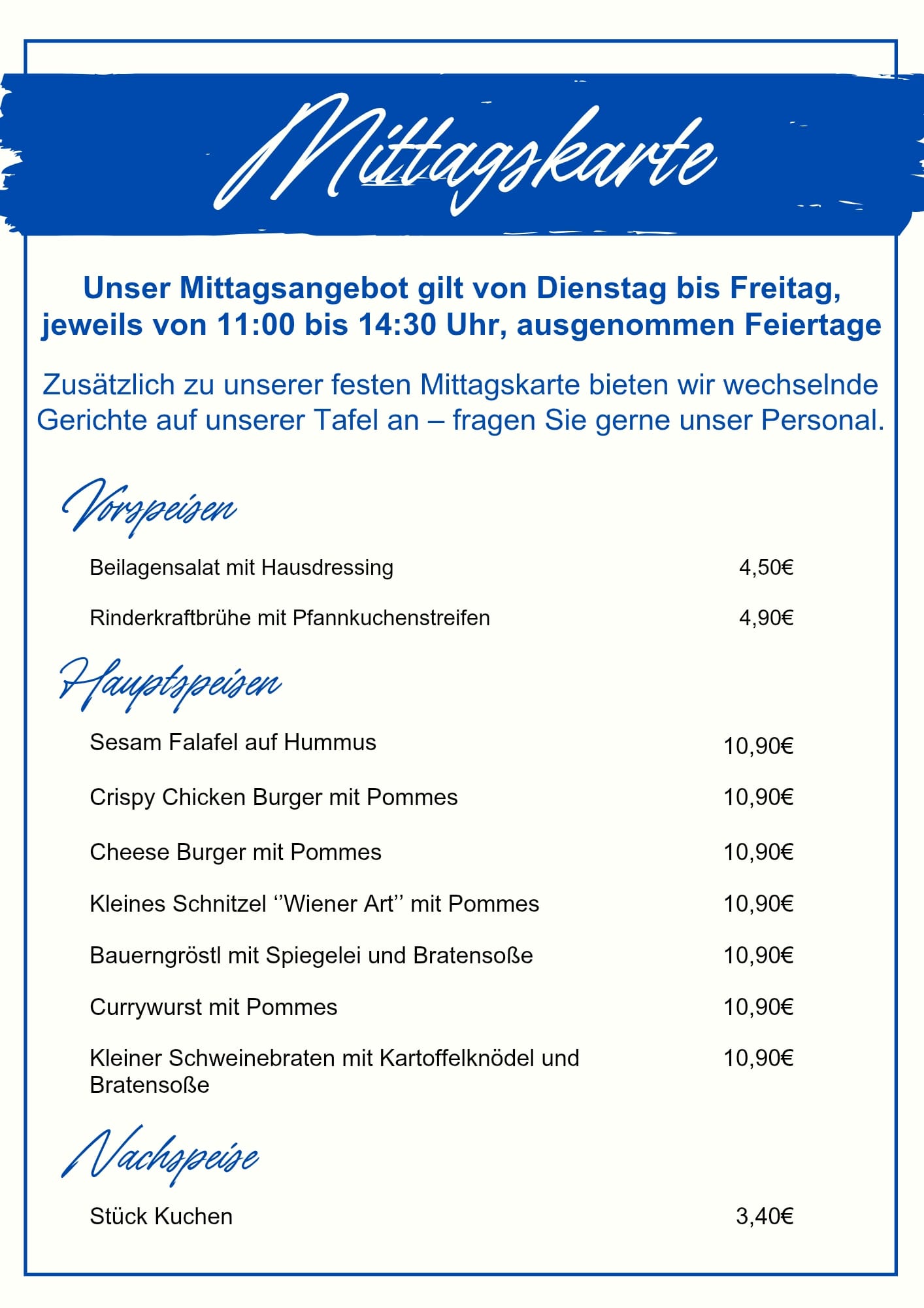 Warme Küche bis 21:00 Uhr oder nach Vereinbarung